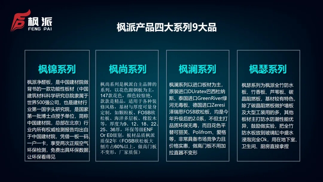 枫派的愿景深远而宏大-希望每一个家庭都能因枫派板材而拥有清新健康的生活氛围,让绿色环保的理念深入人心,成为全球家居行业的绿色标杆,推动人与自然的和谐共生,引领社会迈向绿色未来。枫派始终致力于打造绿色环保的家居环境,让每一片板材都承载着生命的力量,用专业与用心为人们营造健康、舒适、安心的居住空间,立志成为绿色家居的引领者与推动者。